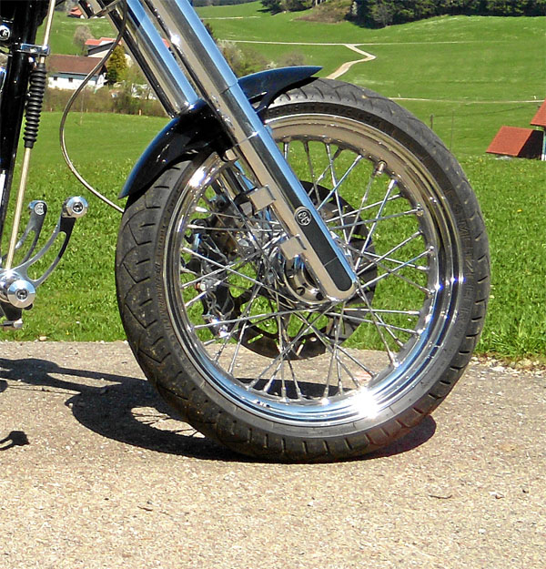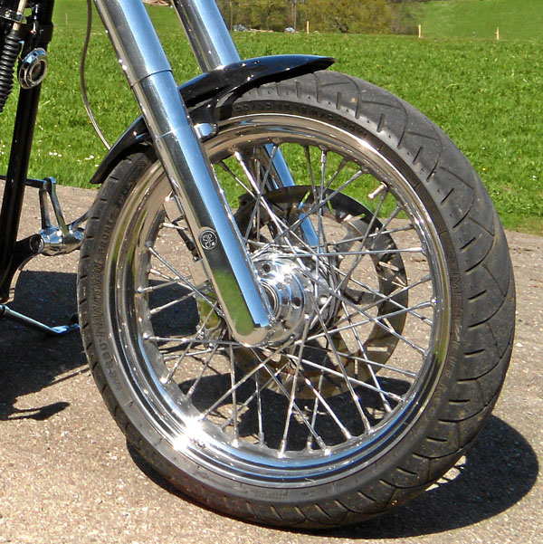 Um der Gabel etwas mehr Stabilität zu geben, habe ich einen Zassel Metall Fender verbaut. Der Fender in schönem Cutout Style passt jetzt sehr gut zum Heck.