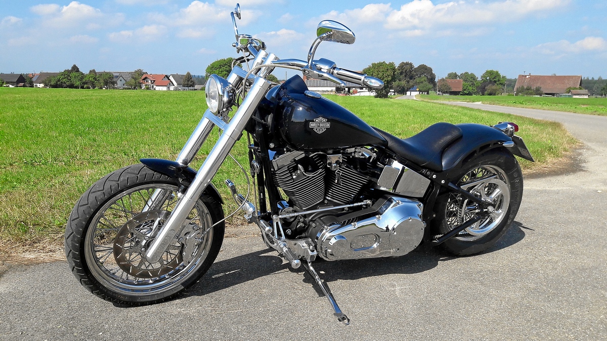 Das Fahrverhalten hat mich dann aber doch angenehm überrascht. Während der Fahrt ist das Gewicht der Maschine nicht zu spüren, durch die sehr hoch angebrachten Fußrasten sind richtige Schräglagen drin. Sogar enge Kehren lassen sich gut fahren. Das ist kein Vergleich zu meinen damaligen Yamaha Chopper, die Harley ist insgesamt deutlich höher.