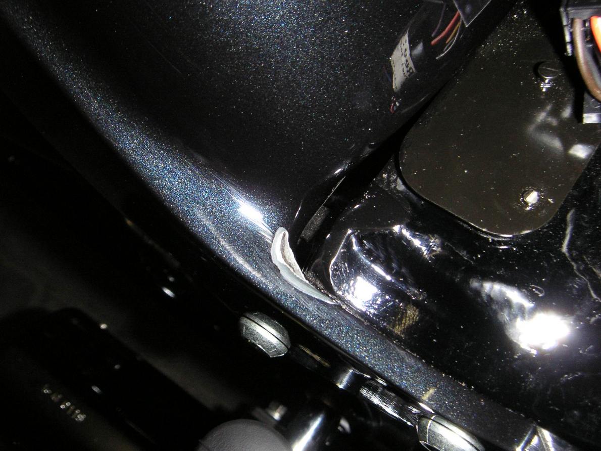 Beim Putzen ist mir aufgefallen, dass am Heckfender an 2 Seiten der Lack abgeplatzt ist. Ich habe das natürlich sofort reklamiert. Alles kein Thema im Herbst wird der Schaden behoben und der Fender neu lackiert. Somit fahre ich nun mit zwei schwarzen Klebebändern herum :-)