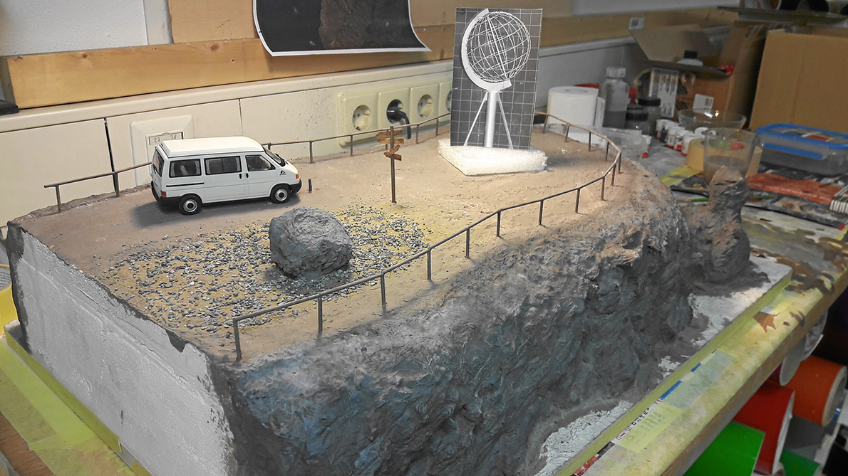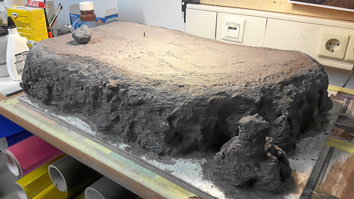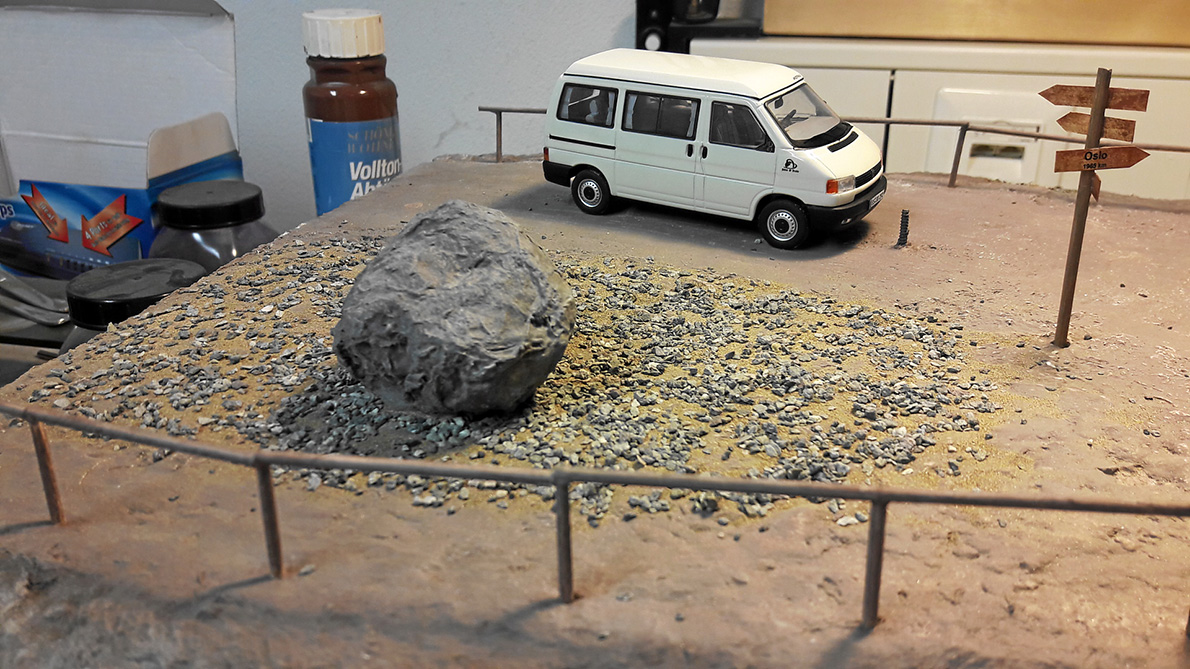 Oben noch einen kleinen Felsen und die Befestigungsschraube für den Bus wurde auch gleich mit eingeklebt.