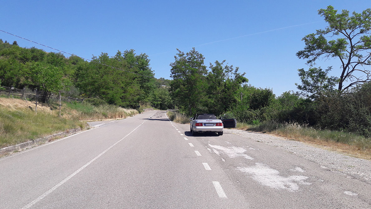 Ende Mai war ein Urlaub in die Toskana geplant, natürlich mit dem SL. Auf den ersten Ausfahrten hatten wir einige knarzende Geräusche im Bereich der Vorder- und Hinterachse festgestellt. Ich hatte ein ungutes Gefühl ohne genaues Wissen über das Geräusch eine so lange Reise mit einem mir noch nicht vertrauten Auto zu wagen.