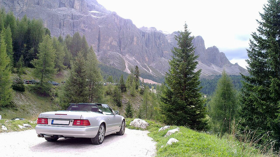 Der zweite Urlaub mit dem SL führte uns nach Südtirol. Hier machten wir einen schönen Mix aus Wandern und Cabriotouren. Ein Highlight war sicherlich die Runde um den Sellastock. Die 4 Pässe machten mit dem 5l V8 einfach nur Spaß. Am Ende des Urlaubs waren 1200km mehr auf der Uhr und ein Grinsen im Gesicht