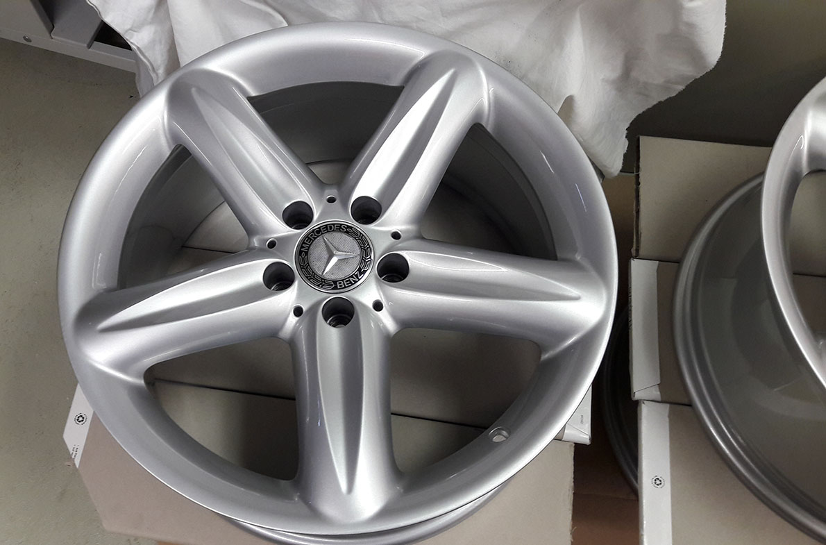 Nach 3 Wochen waren die Felgen von Aufbereiter zurück und warten nun mit neuen Nabenkappen auf die Montage zum Saisonstart.