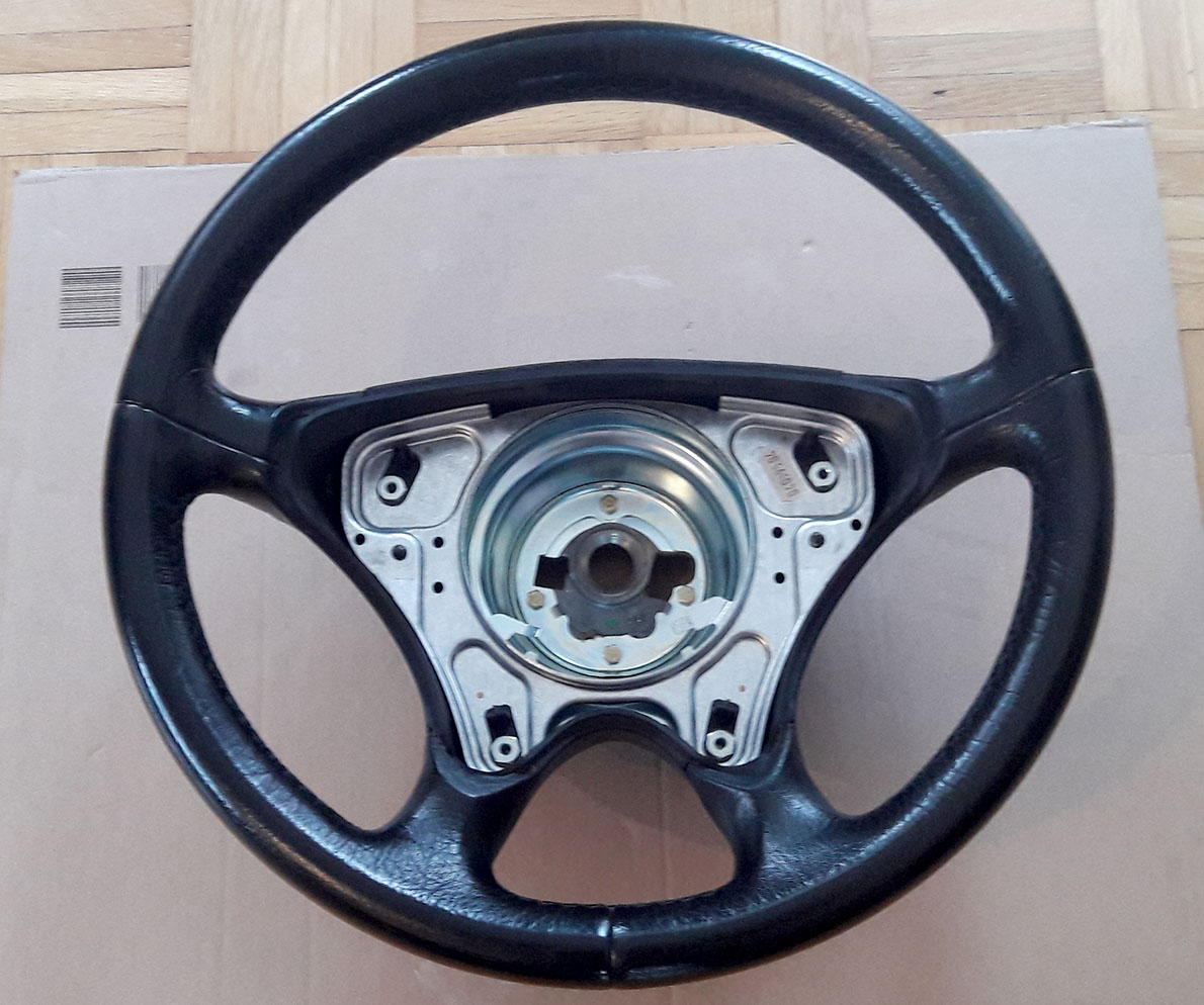 Das Holzlenkrad ist schon ziemlich abgeriffen und sieht nicht mehr schön aus, darum wollte ich es eigentlich neu beledern lassen. Auf der Suche nach einem günstigen Ersatz für den Übergang fand ich ein Vollederlenkrad in sehr gutem Zustand. Dies wird nun das Holzlenkrad komplett ersetzen und das wandert vorerst ins Archiv. Vielleicht werde ich es in Zukunft doch mal aufbereiten lassen.